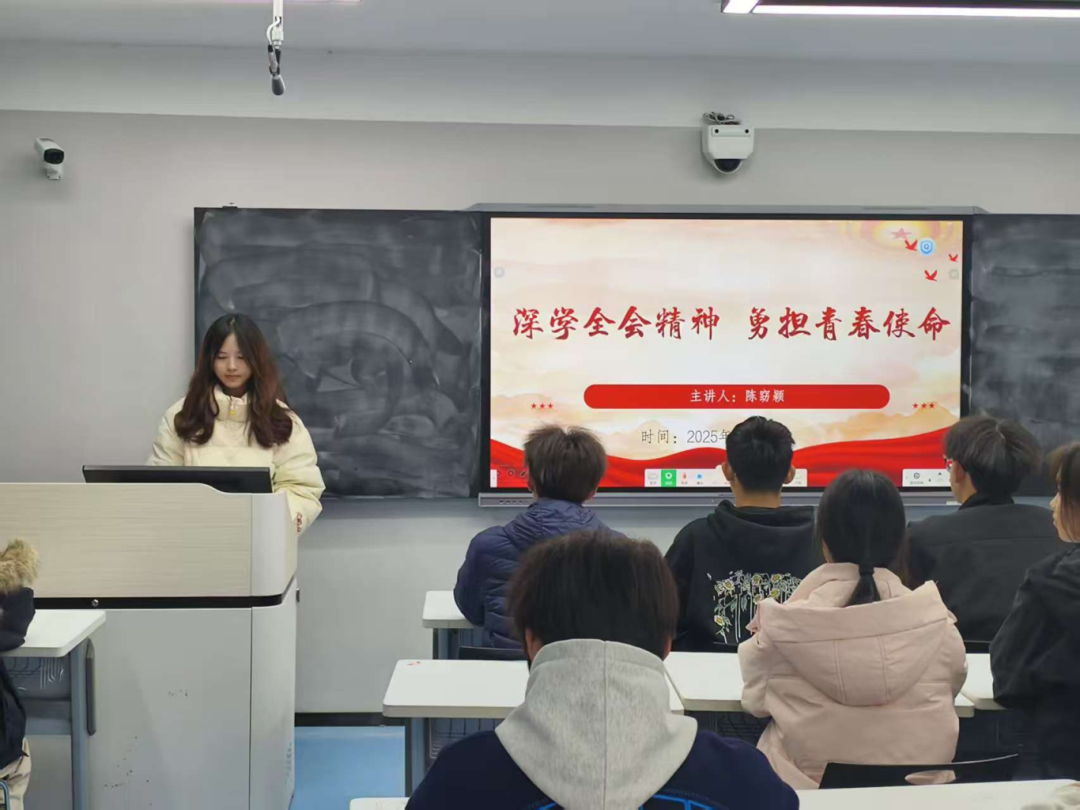 【人文学院讯 袁金顺撰稿】为推动党的二十届四中全会精神在青年群体中落地生根,引导我院青年、团员将个人理想融入国家发展大局,12月3日晚上,我院团委以“深学全会精神 勇担青春使命”为主题,举办专题学习会。会议由我院团委学生副书记陈窈颖主讲,2025级团支部书记和团员骨干共同参会。
