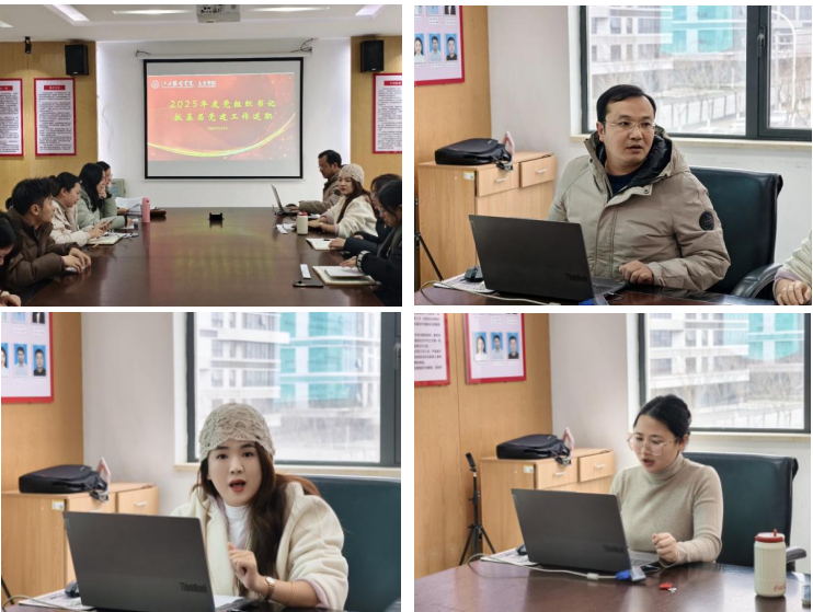 会上,首先召开2025年度党组织书记抓基层党建工作述职会议。教师党支部书记陈家华、学生党支部书记王艳艳、院党总支组织员计娟娟依次上台述职。三位述职人员围绕基层党组织建设、党员发展与教育管理、党建与业务融合、党风廉政建设等核心任务,结合工作实际案例与具体成效数据,全面总结了年度党建工作亮点,深入剖析了党建工作中存在的薄弱环节,并明确了下一步改进思路与工作举措。