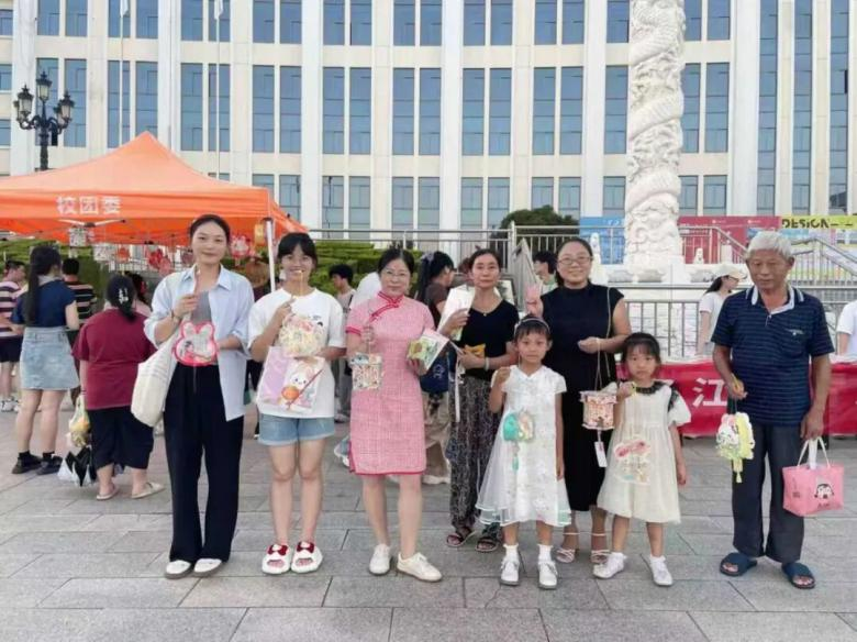 除了赏灯,活动还设置了丰富的互动环节。在手工区域,摆放着各类包装好的手工材料包,师生们可以挑选自己喜欢的材料,亲手制作与中秋相关的手工艺品,体验手工创作的乐趣。