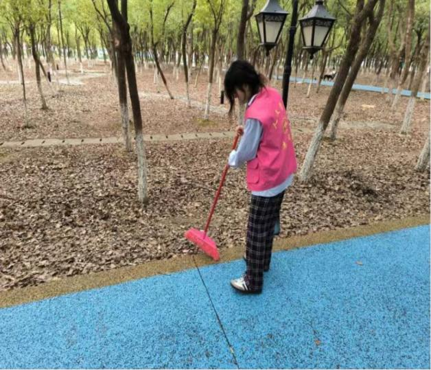 活动现场,同学们分工明确、干劲十足。大家手持扫帚、垃圾袋等工具,穿梭在树林间,仔细清扫地面的落叶、枯枝及隐藏的杂物。有的弯腰捡拾散落在草丛中的垃圾,有的合力将堆积的落叶归拢装袋,有的细心清理角落缝隙的卫生死角。统一的服装让忙碌的身影成为林间一道靓丽的风景线,同学们不怕脏、不怕累,相互配合、默契协作,原本散落着落叶的林间小道逐渐变得整洁有序。