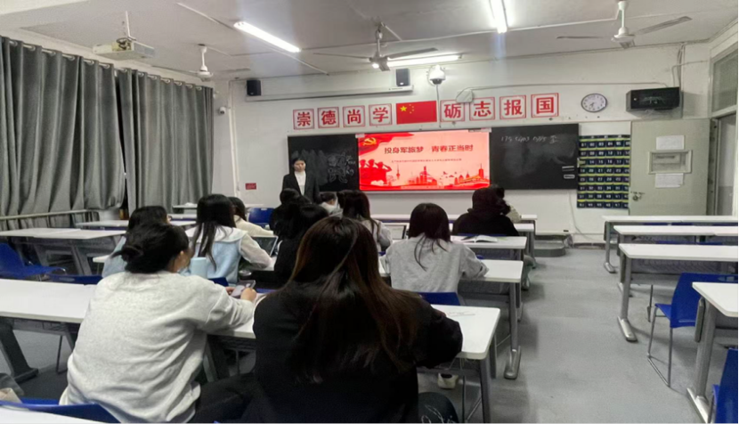 【人文学院讯 钱骏成撰稿】为深入学习贯彻习近平新时代中国特色社会主义思想,落实新时代国防和军队建设要求,人文学院面向2022级毕业生于2025年11月2日晚18:00开展了“投身军旅梦,青春正当时”主题班会,通过政策解读、事迹分享等形式,搭建起同学们了解征兵信息的重要平台。