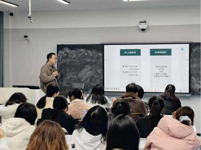 【人文学院讯 袁金顺撰稿】为搭建企业与学生双向对接的就业桥梁,助力学子精准匹配优质岗位,12月1日上午10:00人文学院院长邹晓春邀请浙江艾国星电子科技有限公司到校开展校园招聘会。邹院长率先为同学们全面解读浙江艾国星电子科技有限公司的发展底蕴与综合实力。