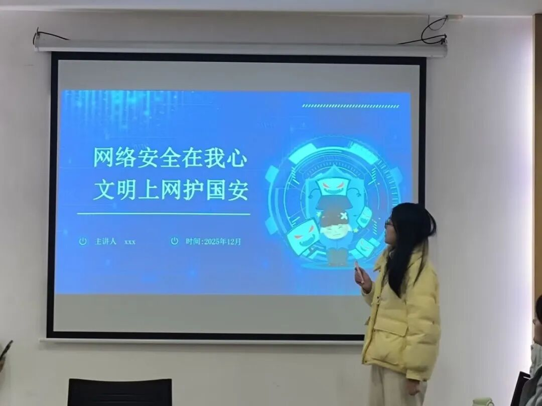 大三宣讲主题是“网络安全在我心,文明上网护国安”。试讲同学从多个角度对网络安全与国家安全的定义及现状进行了详细讲解,让同学们了解到网络安全不仅是个人隐私的保护,更是国家安全的重要组成部分。在讲解“翻墙”的危害时,试讲同学深入剖析了其可能带来的诸多风险,引导大家自觉抵制不良网络行为,做到文明上网,为维护国家网络安全贡献自己的一份力量。