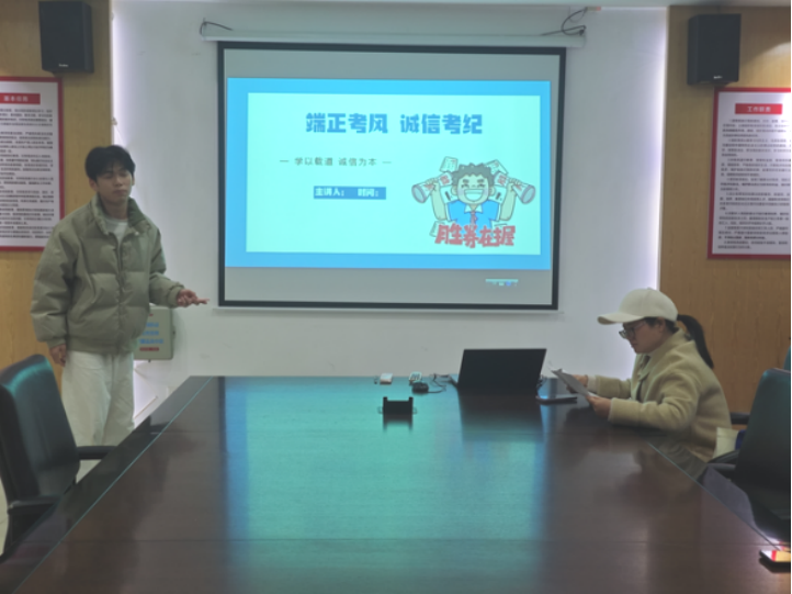 同时,会议正式下发12月21日晚主题班会的分级主题材料,明确不同年级的班会核心方向:大一聚焦“共筑梦想 携手成长”,旨在帮助新生快速融入集体生活,引导大家树立正确的学业目标,凝聚班级向心力;大二围绕“寒假社会实践——回访母校”,鼓励同学们利用寒假重返高中母校,分享大学生活点滴,在实践中锻炼沟通表达能力,传承校友情谊;大三紧扣“考之以诚 答之以信”,结合期末考风考纪教育,强化同学们的诚信应考意识,筑牢诚信立身的思想根基。