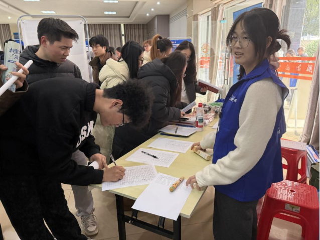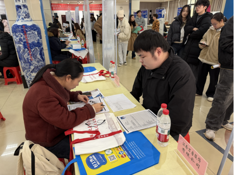 【人文学院讯 张可怡撰稿】2025年12月23日上午9:30,江西服装学院就业处在思贤楼举办2025年金秋招聘月系列活动之研后专场招聘会。本次招聘会吸引了80余家企业参加,为毕业生提供了丰富的岗位选择。为帮助同学们尽早更好地找到心仪岗位,人文学院党总支书记周洪英带领学院全体辅导员组织2026届毕业生积极参会。