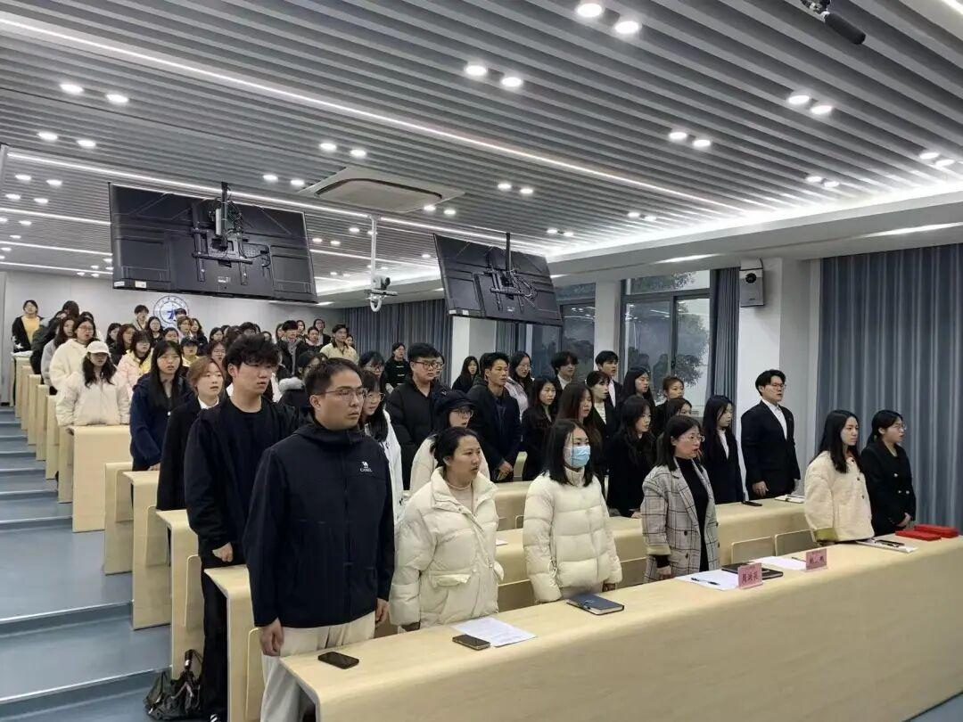 会议正式开始前,全场肃穆有序。全体参会人员自觉起立,身姿端正、神情庄重,在激昂嘹亮的旋律中齐声高唱中华人民共和国国歌。铿锵有力的歌声回荡在会场内外,饱含着对祖国的赤诚与敬意,也以庄严隆重的仪式感,正式拉开了本次会议的序幕。