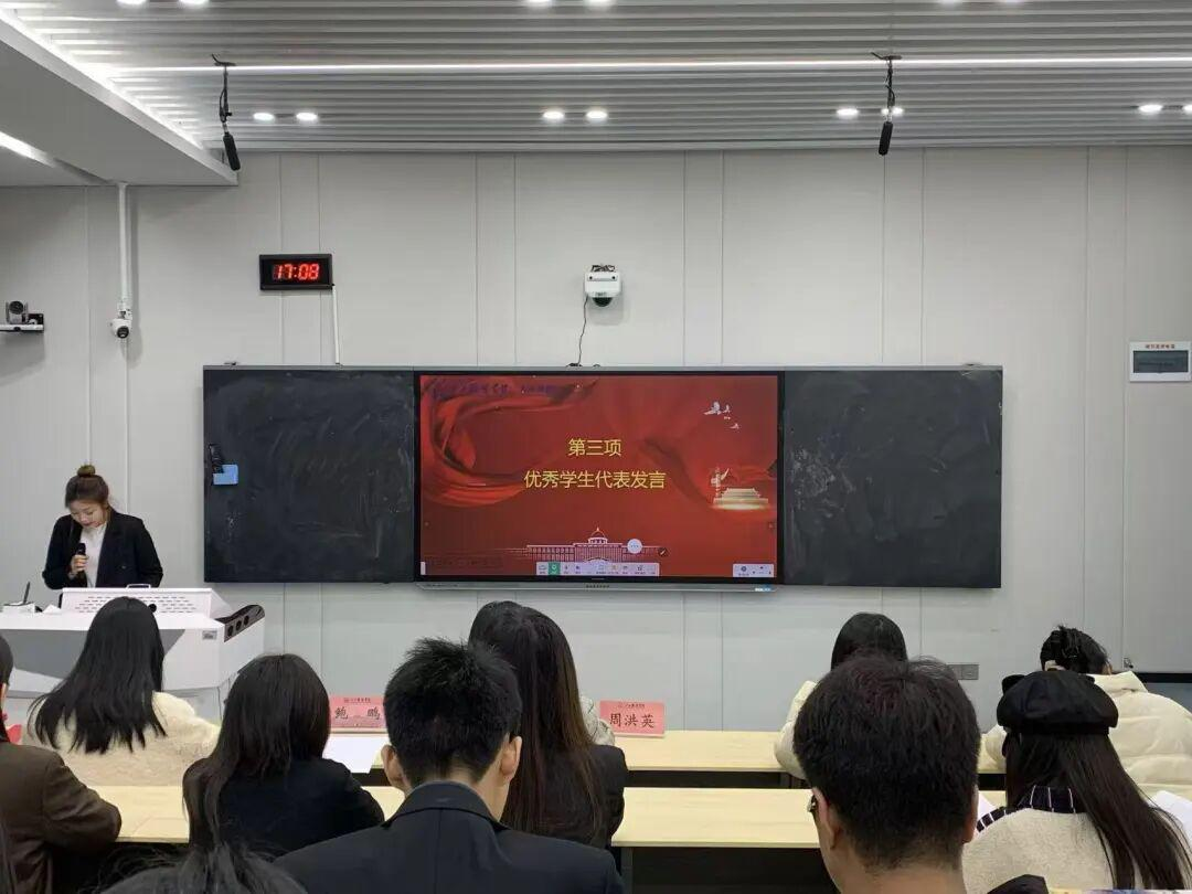 紧接着,优秀学生代表23级商务英语本科3班何一诺同学也上台发言,她分享了自己在专业学习、校园实践中的成长经历,倡议同学们珍惜时光、勤奋进取,以实际行动践行优良学风。