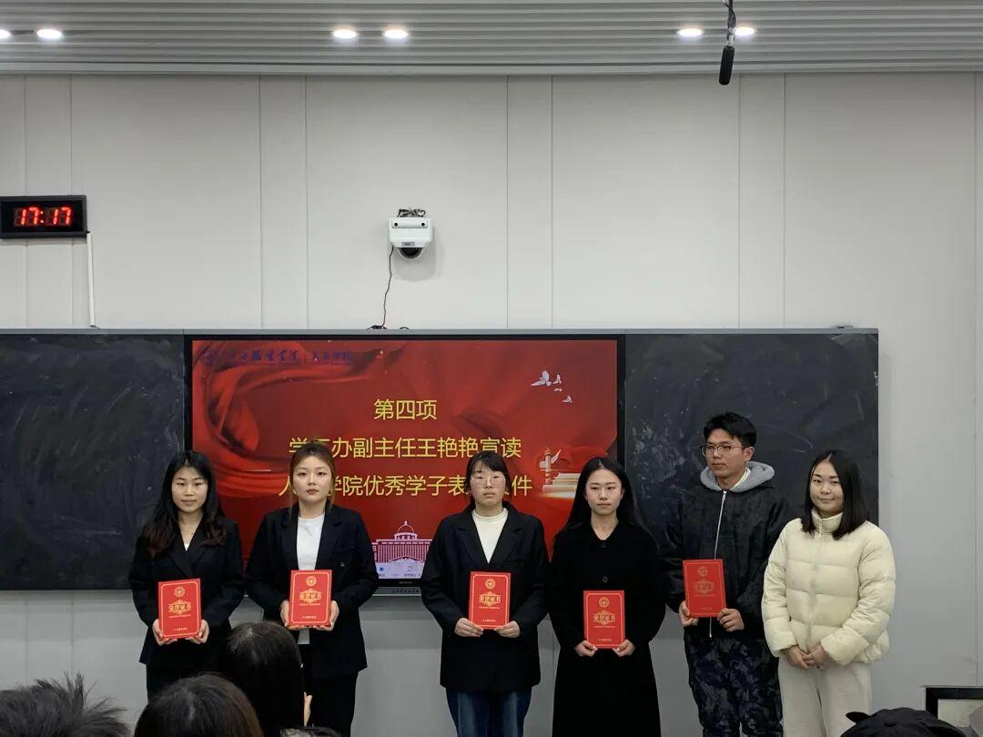 接下来,人文学院学工办副主任王艳艳宣读了优秀学子表彰文件,对过去一年在学业、志愿服务、班级工作等方面表现突出的学生进行了表彰。