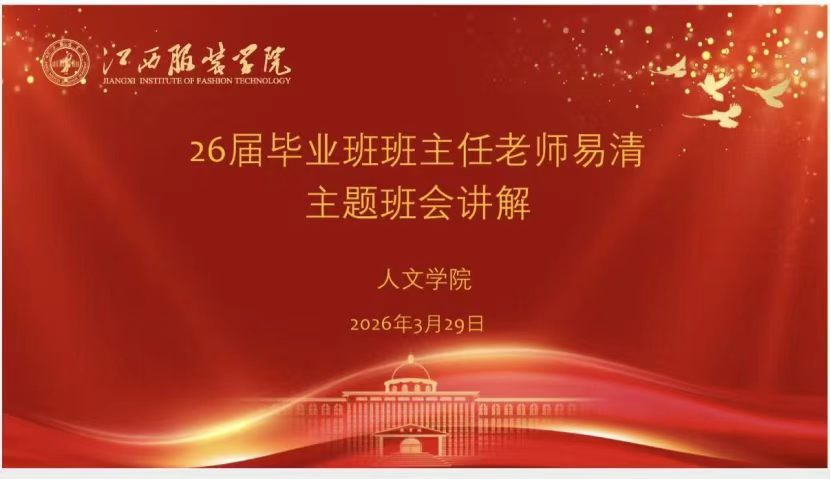 【人文学院讯 韩梦雨撰稿】为帮助2026届毕业生完成从校园到职场的平稳过渡,引导学生树立正确的职场观念、提升职业素养,2026年3月29日,江西服装学院人文学院开展“大学生如何逆袭为职场达人”就业育人主题班会。毕业班班主任易清老师主讲,全体有就业意向的毕业生参会。