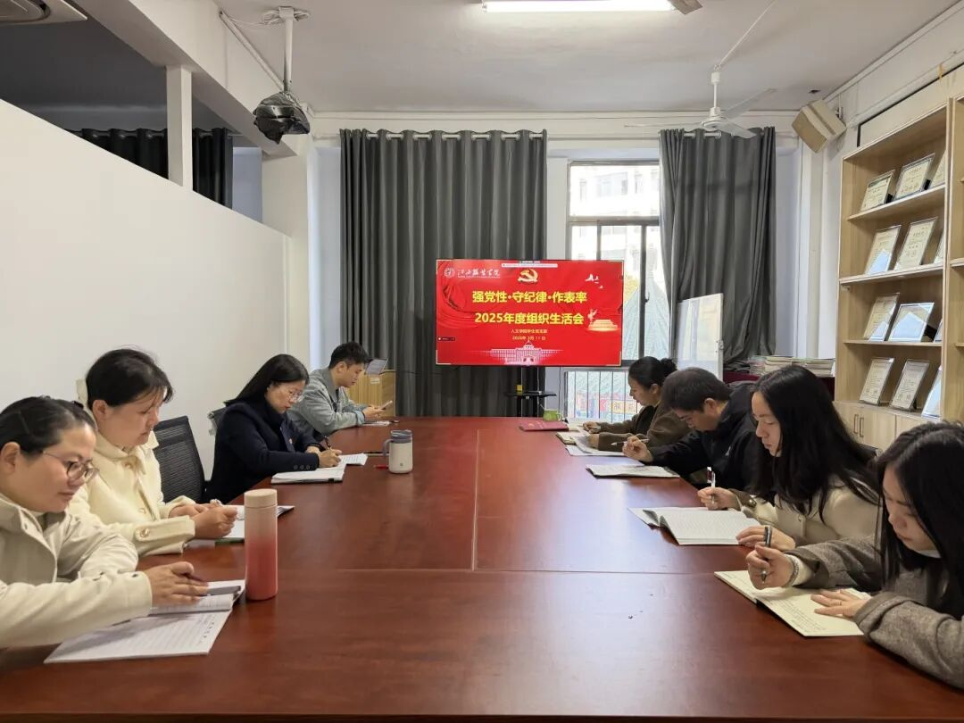 【人文学院讯】为严格落实党内民主生活会制度,持续夯实学院党支部建设基础,江西服装学院人文学院以高度的政治自觉与责任担当,周密部署、认真组织开展相关工作,于2026年3月11日上午10:00,在主教学楼132-1会议室召开2025年度学生党支部组织生活会。本次会议由人文学院学生党支部书记王艳艳主持,支部委员及全体党员(预备党员)参会,人文学院党总支书记周洪英同志出席并点评。