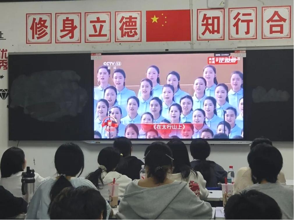 教室里,气氛庄重而热烈。同学们整齐就座,全神贯注于银幕上震撼人心的画面。受阅将士们铿锵有力的步伐、英姿飒爽的阵容、现代化武器装备的磅礴气势,无不展现着国家的发展成就与捍卫和平的坚定决心。同学们时而为恢宏的场面所震撼,时而因激昂的旋律而心潮澎湃,在这场视觉与心灵的盛宴中,真切感受到了大国荣光与喷薄而出的民族自豪感。