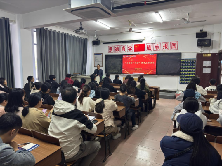【人文学院讯 蒙晓晴 石俊宇撰稿】为提高学院“双创”赛事工作质量、明确赛事流程、做好赛事准备并提升赛事成果产出,人文学院于2025年11月11日中午12:40在主教楼135教室召开“双创”赛事工作会议,会议由学院副院长陈家华主持,院长邹晓春、党总支副书记周洪英、各专业教研室主任、全体辅导员及各班双创委员参会。