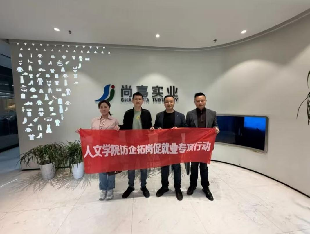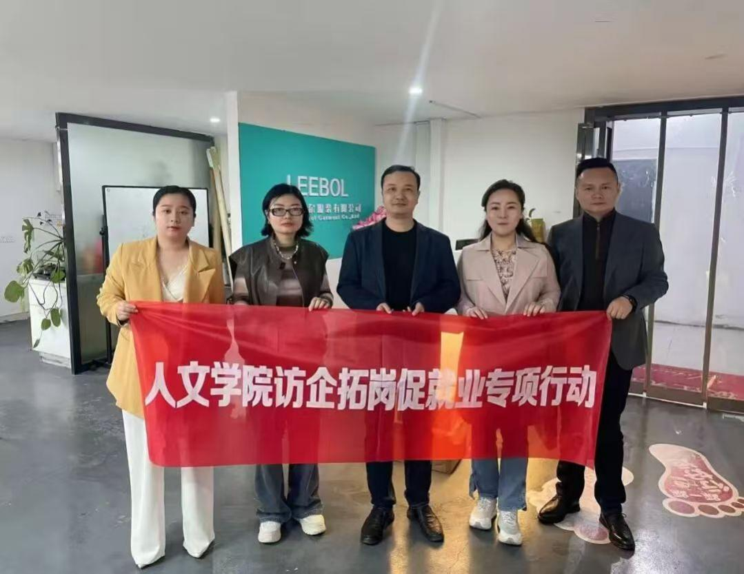 【人文学院讯 江西服装学院人文学院撰稿】为深入贯彻落实党中央、国务院关于高校毕业生就业工作的决策部署,扎实推进“访企拓岗”专项行动,3月30日上午,人文学院党总支副书记陈家华、教研室主任吴丽娜、刘赛球老师等一行前往南昌智弘针织服饰有限公司、江西尚嘉实业有限公司、江西楼蓝科技有限公司等企业开展走访调研,深入了解企业用人需求,拓展毕业生就业渠道,为2026届毕业生搭建更广阔的就业平台。