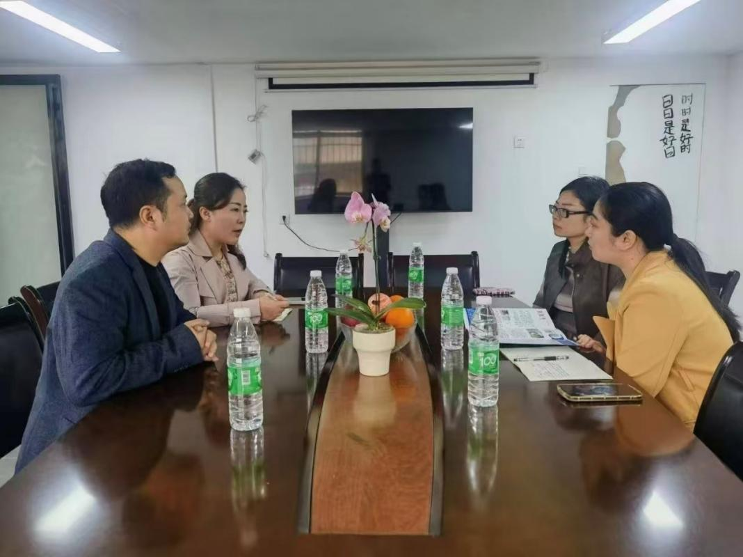 走访期间,调研团队首先来到南昌智弘针织服饰有限公司。企业负责人详细介绍了公司的发展历程、主营业务及人才需求情况。双方围绕商务英语专业人才培养、外贸业务员及外贸助理等岗位的技能要求进行了深入交流,针对建立常态化校企合作机制、开展专业人才培养等事宜展开深入研讨。