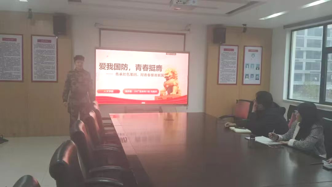 【人文学院讯 邓佳谊撰稿】为深入推进国防教育走深走实,传承红色基因、厚植爱国情怀,3月30日下午16;00,人文学院在学院204会议室召开“爱我国防”主题比赛。学院党总支书记周洪英、副书记陈家华、征兵专干刘建老师到会指导,学院师生代表齐聚一堂,围绕国防建设、红色传承与青春担当展开交流分享,共同凝聚起“强国有我、爱我国防”的青春力量。